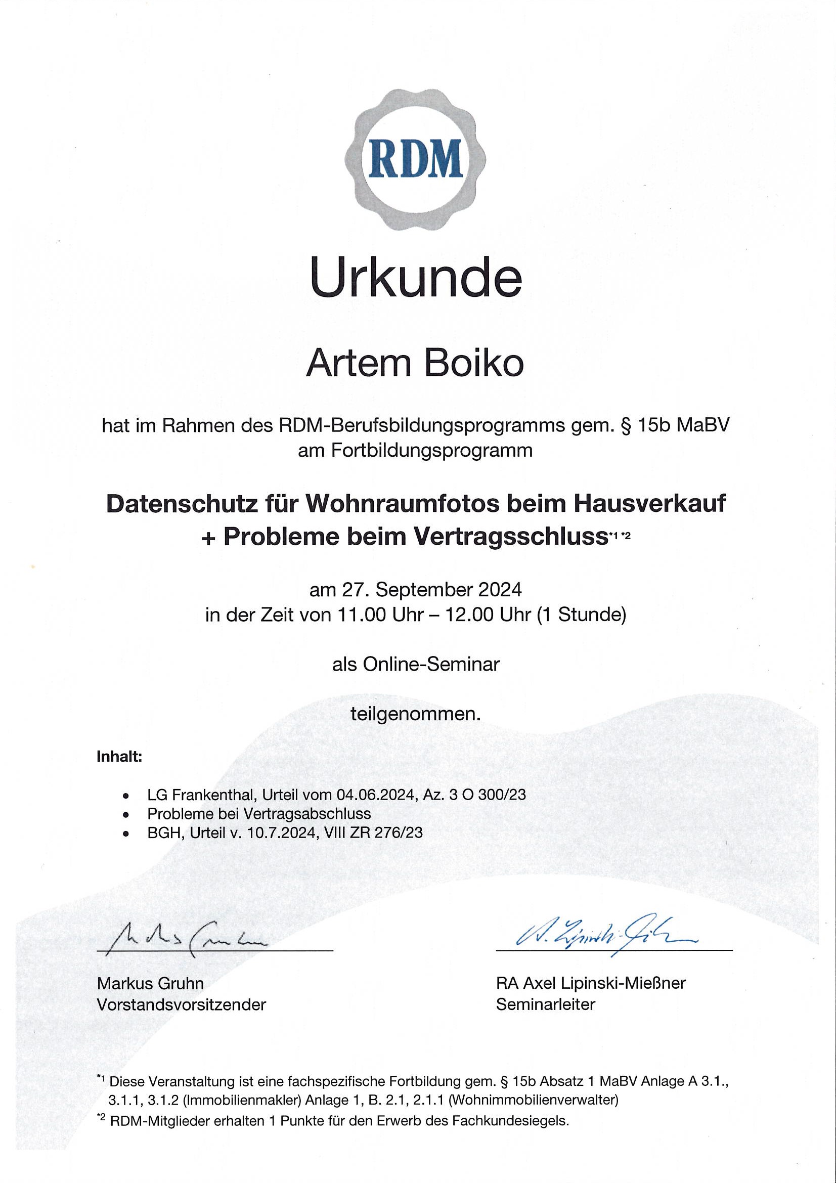 Um die Interessen unserer Kunden besser vertreten zu können und Ihre Ideen effizient umzusetzen, bilde ich mich regelmäßig weiter.